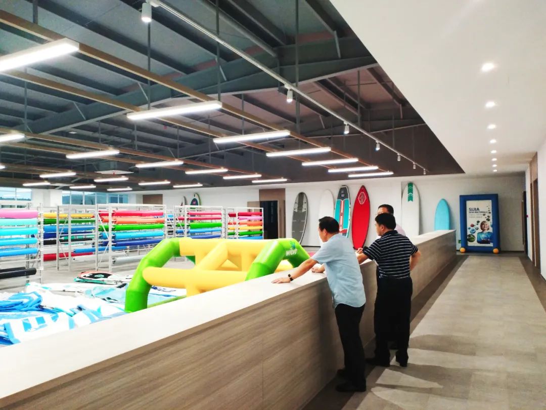 在參觀思嘉產(chǎn)品展廳時(shí),領(lǐng)導(dǎo)們看到由思嘉氣密、氣膜、空間布等材料制造的終端產(chǎn)品,細(xì)聽產(chǎn)品信息,感受產(chǎn)品質(zhì)量,對(duì)思嘉產(chǎn)品表示認(rèn)可。