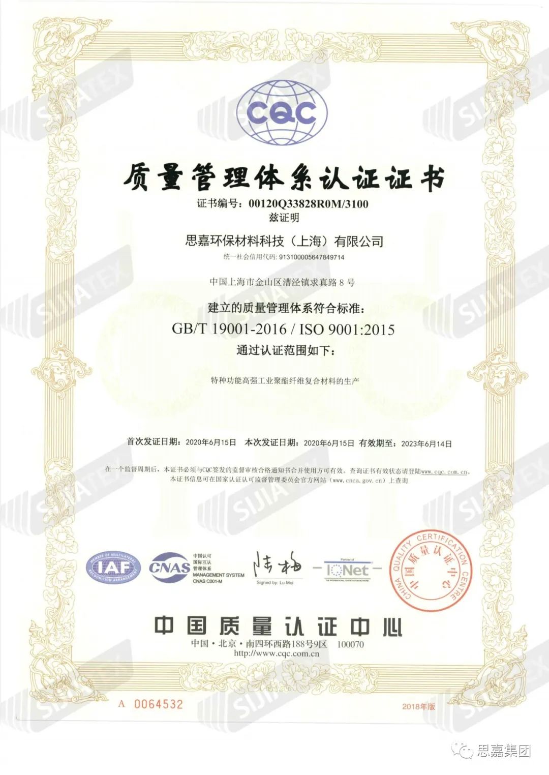 ISO9001質(zhì)量管理體系標(biāo)準(zhǔn)和ISO14000環(huán)境管理體系標(biāo)準(zhǔn)是國(guó)際公認(rèn)的對(duì)商品或服務(wù)進(jìn)行質(zhì)量、環(huán)保評(píng)價(jià)的管理體系標(biāo)準(zhǔn)。嚴(yán)格按照該標(biāo)準(zhǔn)運(yùn)營(yíng),有助于企業(yè)進(jìn)一步鞏固自身管理體系,適應(yīng)商品經(jīng)濟(jì)擴(kuò)大和日益國(guó)際化的市場(chǎng)需求。近期,上海思嘉順利通過(guò)了ISO9001質(zhì)量管理體系和ISO14000環(huán)境管理體系認(rèn)證。