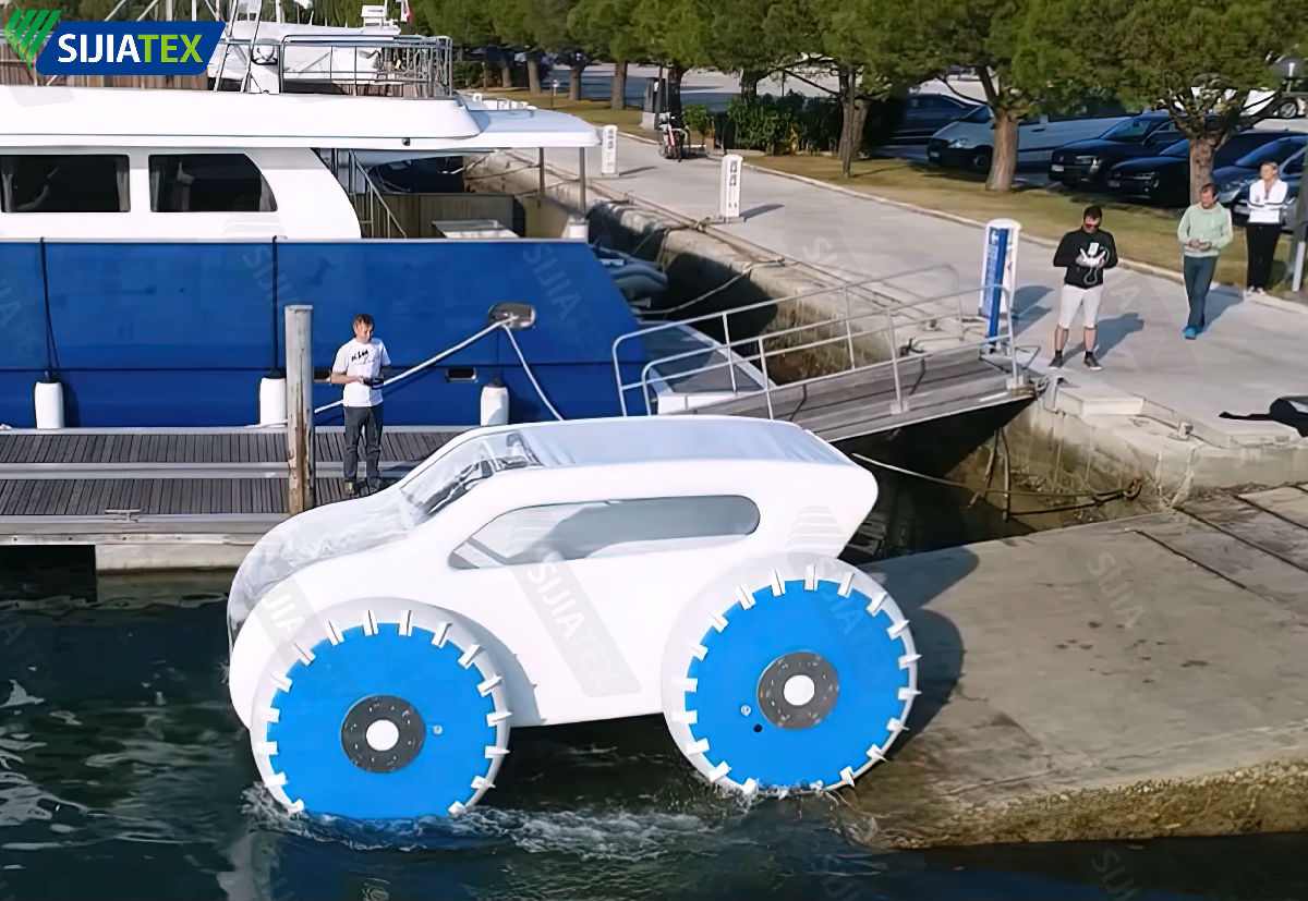 通過創新研發,思嘉集團推出空間布材料、養殖水池材料、充氣艇材料、水上樂園氣密材料,可用于制造水陸兩棲車、太陽能擺渡船、充氣艇、水上樂園、水上停機坪等裝備...這些裝備在世界各地得到廣泛應用,為海洋經濟發展注入新能量。