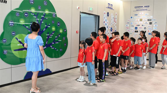 隨后,海風社工服務中心的孟娟代表與王芩一起帶領學員們前往二樓參觀“印象思嘉·思嘉創新文化中心”,從成長足跡到榮譽成就,學員們表現出極大的熱情和興趣,沉浸在繪聲繪色的講解中,對父母的工作單位有了更深的認識。
